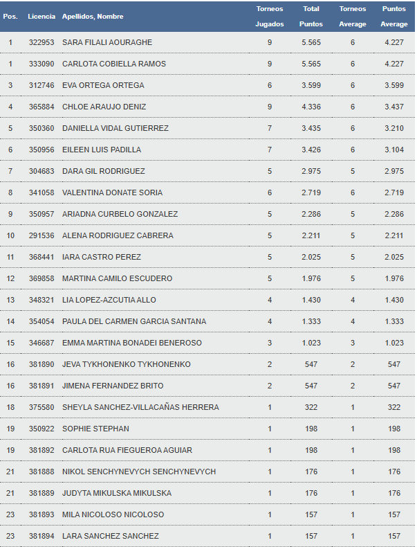 La cima del ranking alevín femenino en esta temporada 2025 tiene dos nombres propios: Sara Filali Aouraghey Carlota Cobiella Ramos.