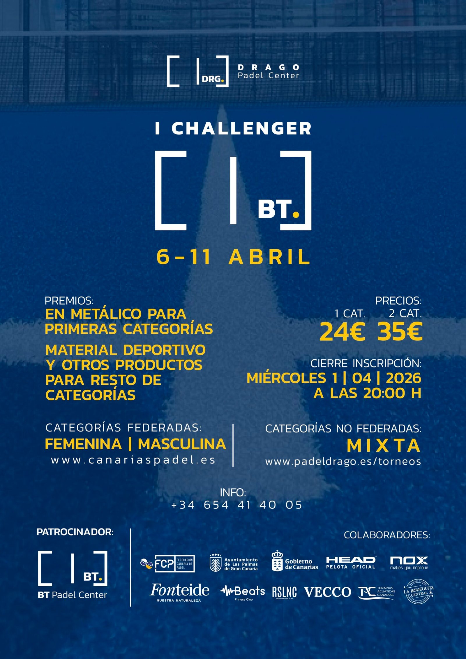 146 participantes · 4 categorías · Árbitro: Paula García · Sede: Drago Padel Center
