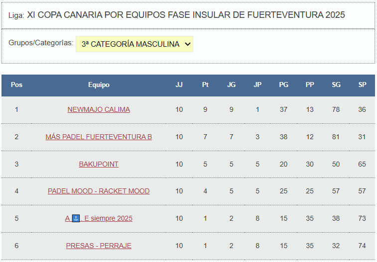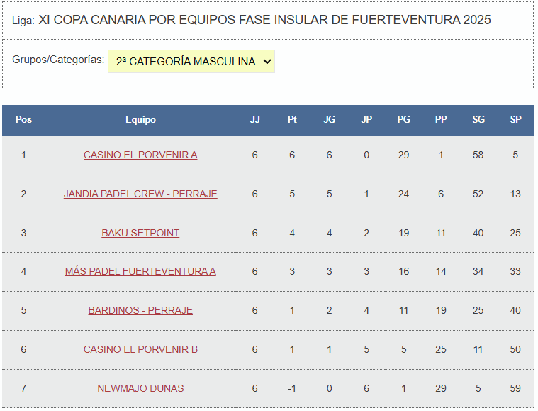 | Clasificados para 2ª categoría Fase Autonómica | 1. Casino El Porvenir A 2. Jandía Pádel Crew – Perraje | 1. Más Pádel FTV |