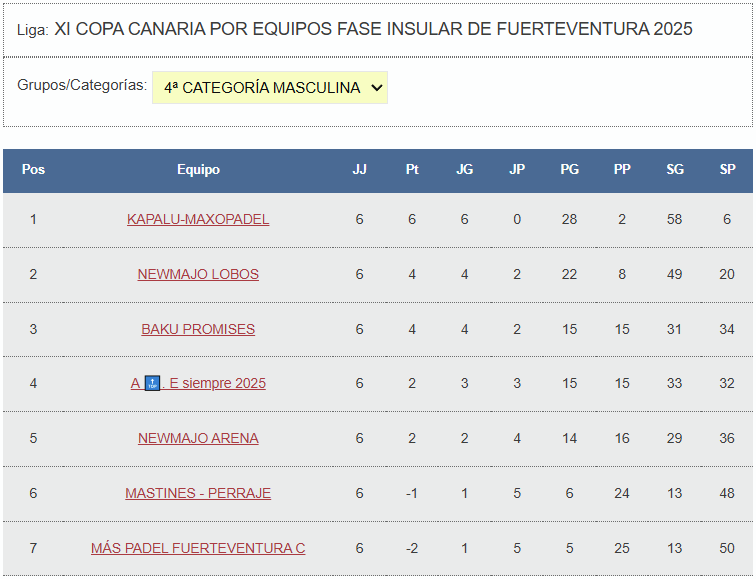 | Clasificados para 4ª categoría Fase Autonómica | 1. Kapalu – Maxopádel 2. New Majo Lobos |