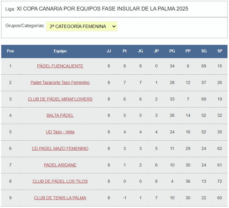 | Clasificados para 2ª categoría Fase Autonómica | 1. Pádel Fuencaliente 2. Tazo Aquahobby | 1. Pádel Fuencaliente 2. Pádel Tazacorte Tazo |